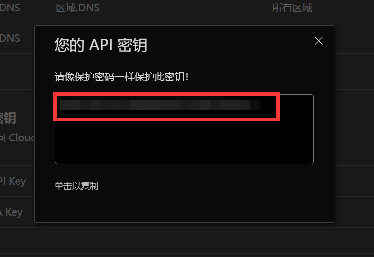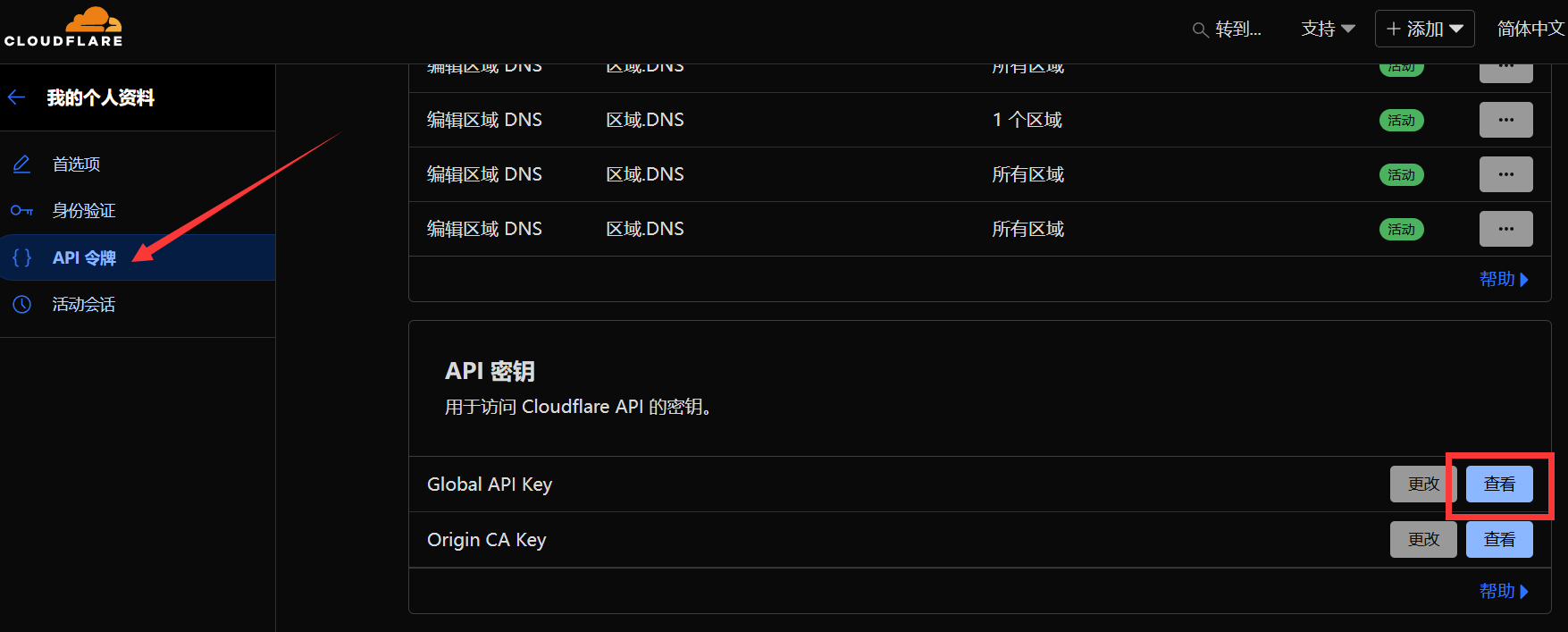 进入左侧边栏 APL令牌 界面 点击查看 Global API Key